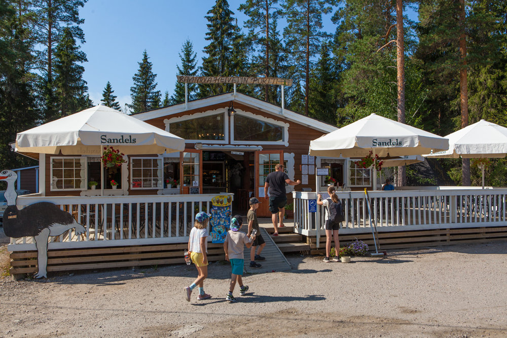 Helvetin Portille avattiin uusi ravintolarakennus keväällä 2020. Tarjolla on omassa tarhassa kasvatettua strutsin ja villisian lihaa sekä myös kalaa. Kaikki elintarvikkeet toimitetaan mahdollisimman läheltä. Ruokalistalta löytyy erilaisia leikkeitä ja käristyksiä sekä muhkeita burgereita, joiden välissä on esimerkiksi 120-grammainen villisian jauhelihapihvi. Listalla on herkkuja myös karvaiselle matkakumppanille. Melko monella karavaanarillakin on nykyisin koira mukana. Yöpyjä pääsee helpolla kun tilaa Helvetin hyvää aamiaista.