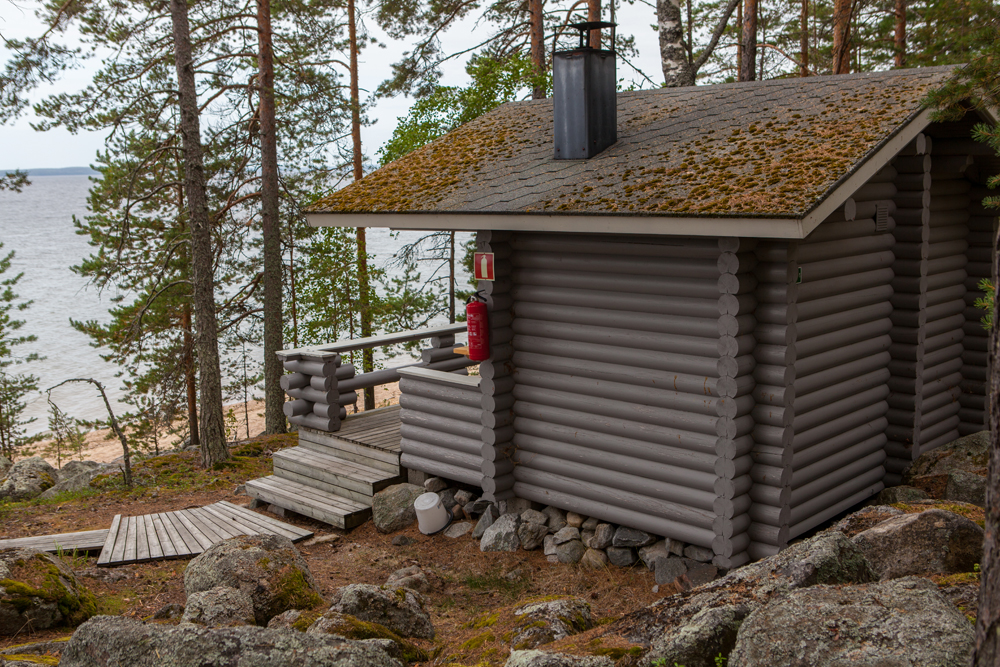 Sopivan kokoinen sauna valitaan perheen tai seurueen koosta riippuen kolmesta saunasta. Tilaa on neljälle, kuudelle tai kymmenelle löylynlyömälle. Puulämmitteisissä saunoissa palaa kesän mittaan 20 kuutiota klapia. Kaikki saunat ovat läntisen pitkän hiekkarannan ja auringonlaskun puolella. Harvinaisen puhdas ja kirkas saunavesi pumpataan Puruvedestä. Kolme kertaa kesässä mitattavan veden laatu on puhtaampaa kuin kaupan pullovedessä.