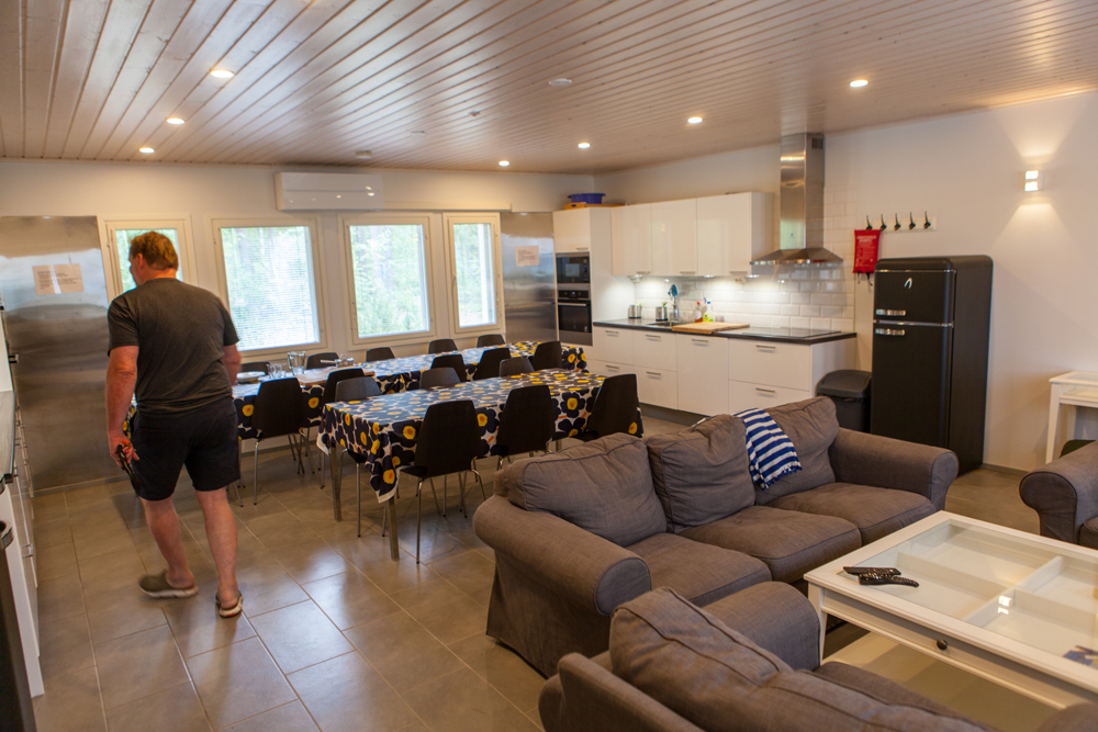 Rakennukset ovatkin hyvässä kunnossa. Mökkien WC- ja suihkurakennus, sekä huoltorakennuksen keittiö, WC- ja suihkutilat on remontoitu 2014-15. Keittiötkin on viimeisen päälle. Kahdessa pisteessä kummassakin keittiössä on induktioliesi pyrolyysi -uunilla, 3 mikroa, 4 pakastinjääkaappia sekä 2 astianpesukonetta. Kokkaukseen on käytössä kaikki keittiövälineet ja tarvittavat astiastot. Keittiöissä on myös tilavat ruokapöydät. Ison keittiön oleskelutilan sohvaryhmän edessä on sadeiltojen ratoksi 52-tuumainen äly -TV, jossa näkyy mm Netflix. keittiöiden ilman pitää miellyttävänä lattialämmitys ja ilmastointi.