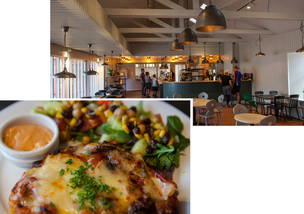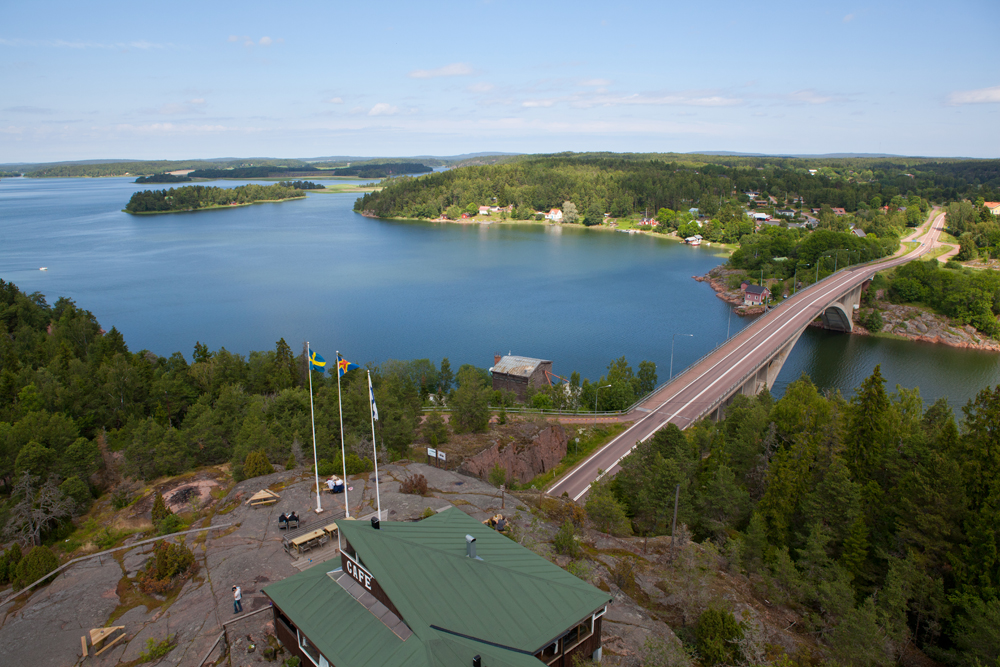 Matkalla itään tie sukeltaa kalliotunnelinn ja sen jälkeen salmea ylittävälle sillalle. Kallion huipulla on näköalapaikka ja ravintola Uffe på Berget. Ravintola terasseineen on seissyt kallion laella jo vuosia. Uudempi rakennus on yli 30-metrinen näkötorni, josta avautuu näkymä saaristoon niin kauas kuin silmä siintää.