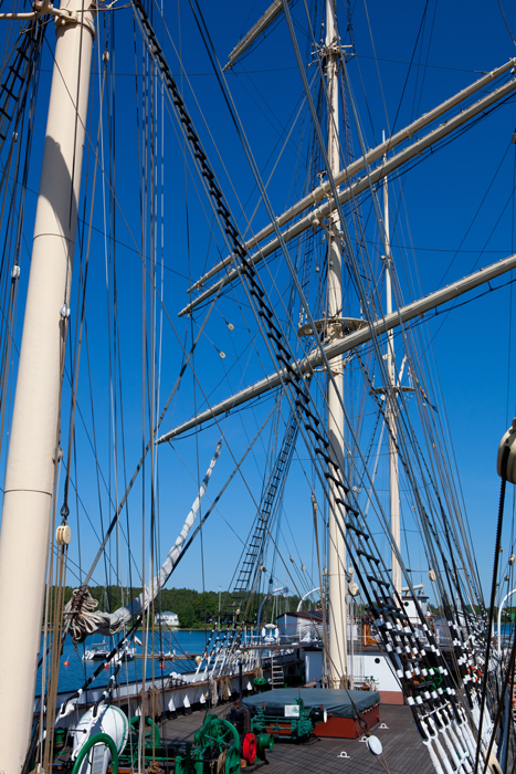 Merillä liikkumiseen liittyy myös itäsataman Merikortteli, josta löytyy vanhoja aluksia, mm. purjelaiva Albanus. Itäsatamassa on myös mielenkiintoisia myymälöitä ja ravintoloita riittää koko rannan pitudelta, ravintolalaiva mukaan lukien. Suosikkimme oli Maarianhaminan pursiseuran suuri rantaterassilta, josta oli mukava seurailla satama-alueella liikkuvia matkailijoita.