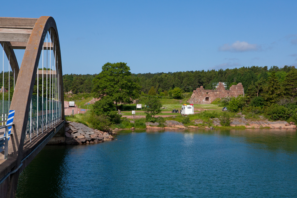 Bomarsundin linnoitus, josta tunnettu Oolanninsodan laulukin kertoo, rakennettiin 1800-luvun puolessa välissä. Linna raunioitui, kun engelsmannit seilasivat kolmella sadalla laivalla Suomemme rannoilla, sunfaraa-sunfaraa! Rannassa on laaja pyöreä päälinnoitusalue. Pikkutien päästä löytyy kallioisen niemen laelta lisää raunioita. Torneista oli tarkoitus hallita tykeillä ympäröiviä salmia. Bomarsundin salmen toisella puolella on pieni luotsirakennus, jossa on linnoituksesta kertova näyttely.