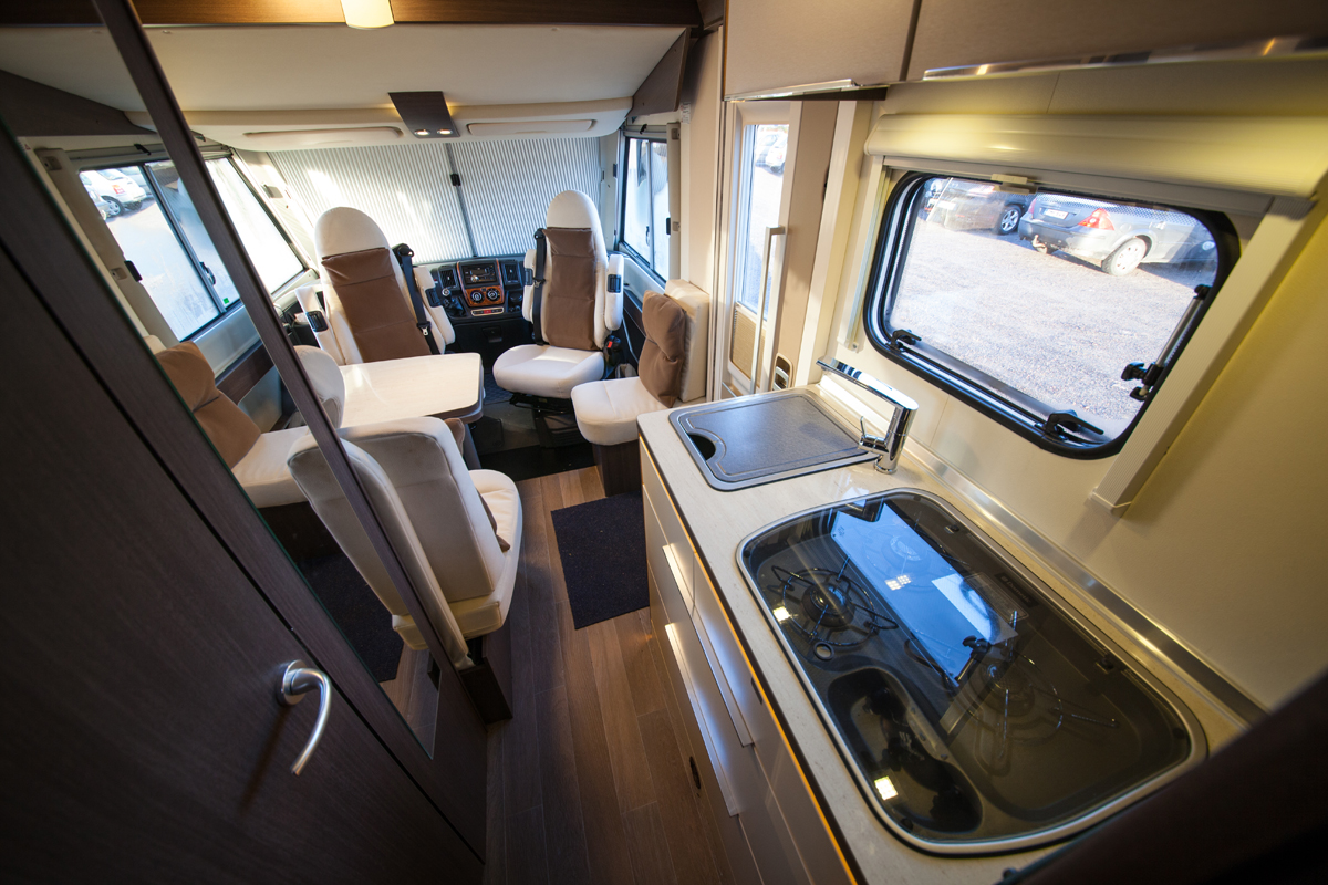 Viseon keskellä on keittiö ja vessa, edessä oloryhmä viidelle. Ohjaamon katossa on alaslaskettava makuuparvi kahdelle. Keskellä autoa on oikealla keittiö ja vasemmalla wc-suihkutila.