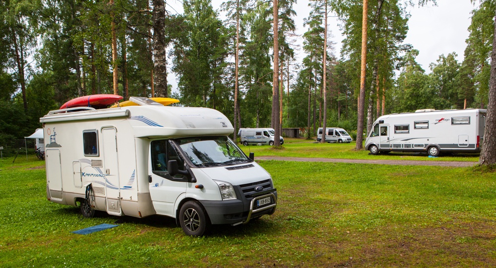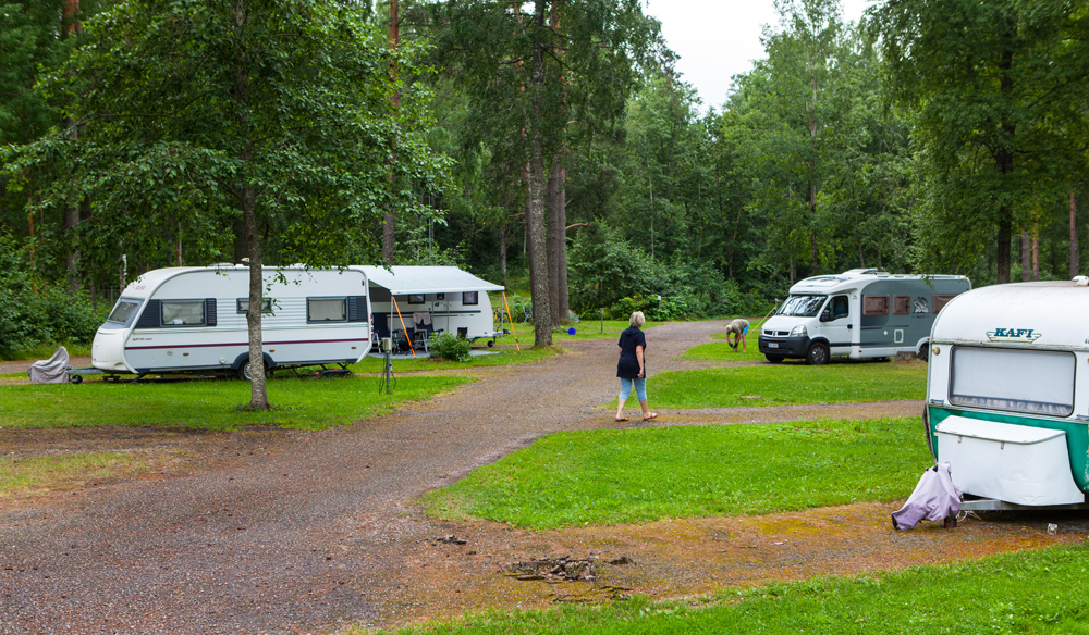 Mäkinen maasto jakaa alueen mukavasti eri osiin. Lähimpänä porttia on paikat matkailuajoneuvoille kahdella alueella. Puiden lomassa kaartelevien hiekkateiden varsilla on taskuparkkeja. Osa matkailuajoneuvoista majoittuu vapaamuotoisemmin nurmikkoalueille. Matkailuajoneuvoille on paikkoja yhteensä 120, joista sähköllä 80.