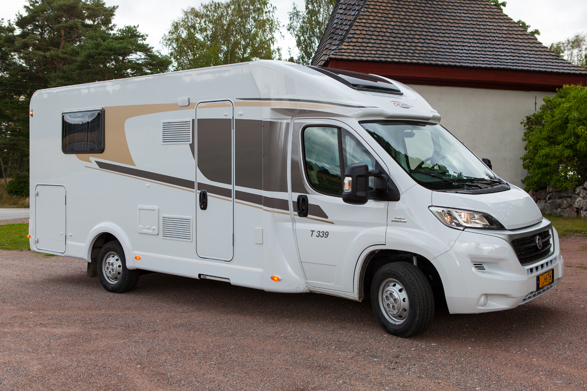 Carado T 399 on uusi saarekevuoteellinen pohjaratkaisu vuodelle 2015. Auto on suunniteltu pariskunnalle mutta etuosan sohvaryhmästä saa tarvittaessa rakennettua yhden lisävuoteen.