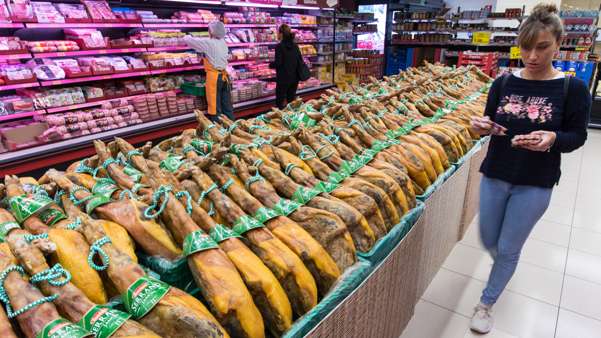 Kääntöpisteestä löytyy Nerjan suurin kauppa Mercadona Supermarcado. Suomen kaupoista poiketen täällä on pitkä tiski täynnä kuivalihaa: Prosscuitto Serrano tai Jamon Serrano. Kilohinta olisi aika paljon Suomea edullisempi. Myös kalavalikoima on laaja ja monipuolinen. Omituisen näköisiä otuksia – jotkut suorastaan rumia – on tiskillä jäissä jäähtymässä.