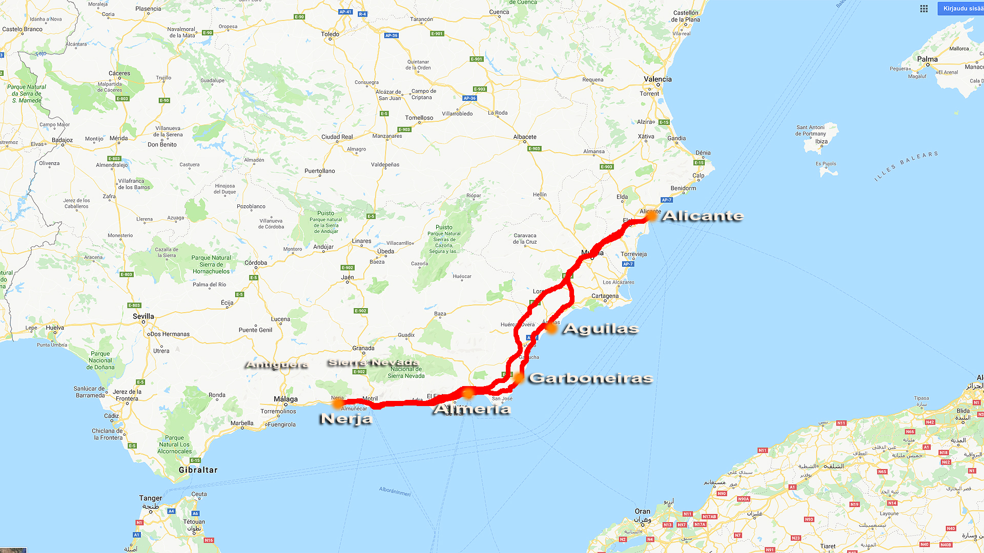 Saavumme hyvissä ajoin Nerjaan, joka on Malagan maakunnan itäisin rannikkokaupunki. Nerja on entinen kalastajakylä, nykyisin 21 000 asukkaan viehättävä pikkukaupunki, eikä kovin laajalti tunnettu turistikeskus suomalaisten keskuudessa. Etelässä aukeaa Välimeri ja selän takana kohoaa Sierra Nevadan jyhkeä vuoristo.