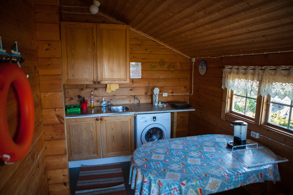 Kolmas rakennus rannassa pitää sisällään keitiön sekä suihkun. Keittiön rannasta on helppo lähteä myös vesille, esimerkiksi melomaan.