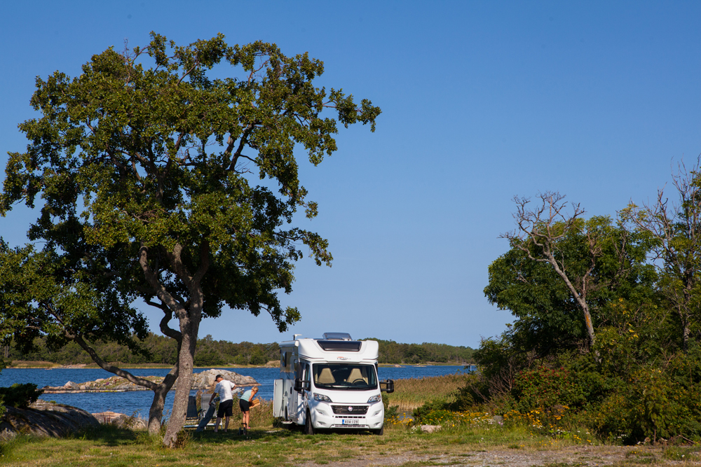 Fisketorpet ei ole kovin suuri alue. Paikka kannattaakin varata etukäteen, ainakin sesonkiaikana. Vaikka vettä ympärillä riittää, saattaa kuivana aikana tulla joskus puutetta makeasta vedestä. Karavaanarin kannattaa täyttää juomavesisäiliönsä varoiksi ennen saarille lähtöä.