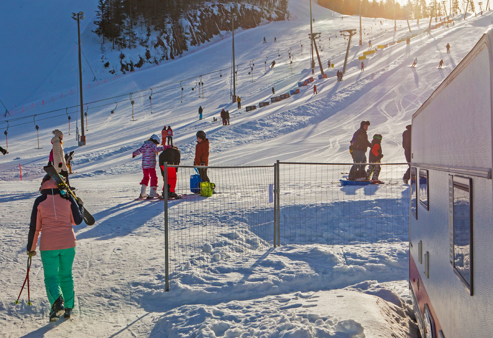 Toinen karavaanialue on heti länsirinteiden juurella. Lähimmille vaunupaikoille pääsee rinteestä suoran laskemalla. Sähköistettyjä ajoneuvopaikkoja on nykyisin 120, keroo Himoksen myyyntipäällikkö Mia Anttonen.