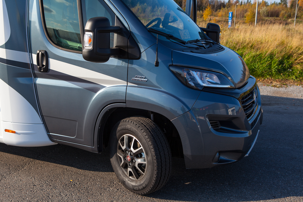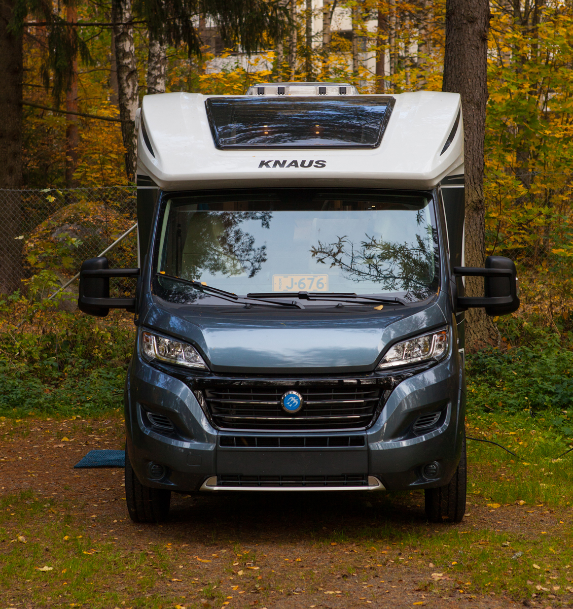 Koeajetun Knausin alustana on Fiat Ducato leveäakselinen alusta, joka on tukeva ajettava. Koeajopäivinä oli erittäin voimakas puuskainen tuuli. Sivutuulessakaan ei tarvinnut tehdä voimakkaita korjausliikkeitä. Koeajoauton 130-hevosvoimainen kone kuljettaa Knausia ripeästi. Satasen nopeuskaan ei tunnu missään, paitsi tietysti kulutuksessa.