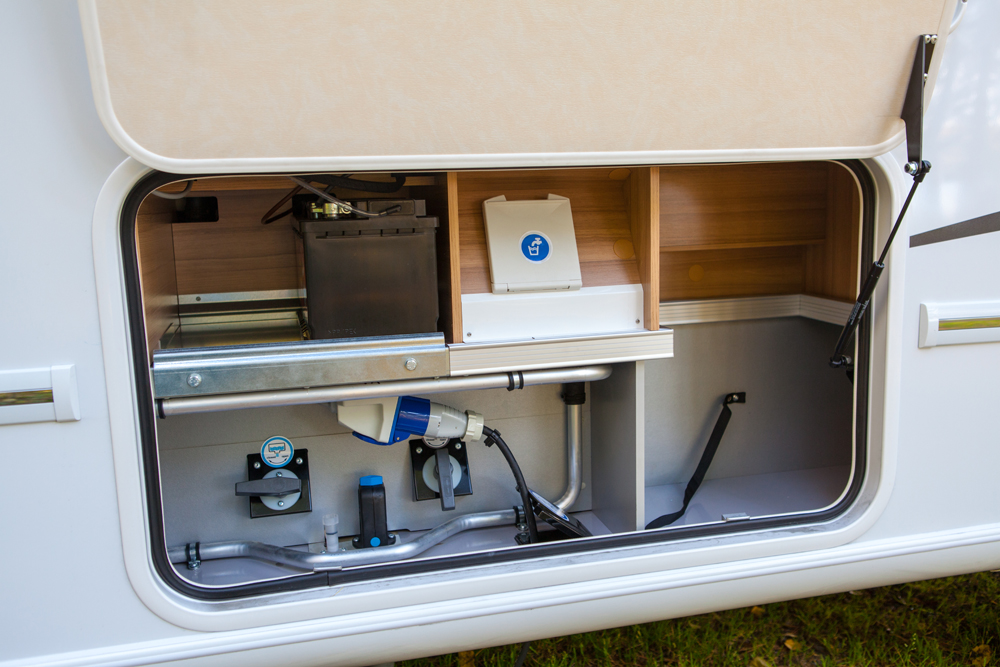 Knaus oli ensimmäinen auto jossa on luukku, jonka takana on kaikki sähkö- ja vesikytkennät. Vasemmalla sivulla olevan luukun takana on sähköliitäntä, jonne kaapeli viedään pohjassa olevan kannellisen aukon läpi. Saman luukun takaa löytyy myös vedentäyttöputki sekä harmaa- ja makeavesisäiliön tyhjennyshanat. Myös lämmityslaitteen lämminvesivaraajan kytkimet ovat saman kannen alla ja tilaa on vielä sähkökaapelikelalle.