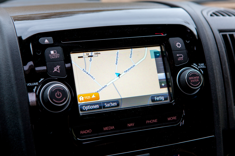 Koeajoautoon asennettu viihdekeskus toimii hienosti. DVD-levyjä voi katsella myös olohuoneen TV-ruudulta. Soittimessa on myös TomTom-navigaattori. Peruutuskameran kuva avautuu automaattisesti näyttöön, kun peruutusvaihde kytketään.