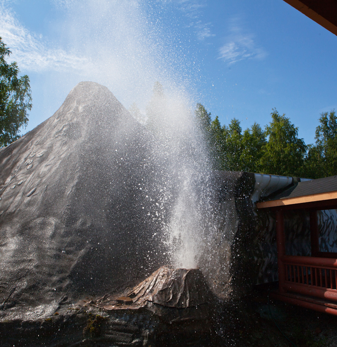 Suurempi saunarakennus palvelee yleisenä saunana, jossa on naisten vuoro 18.00 ja miesten vuoro puolitoista tuntia myöhemmin.
