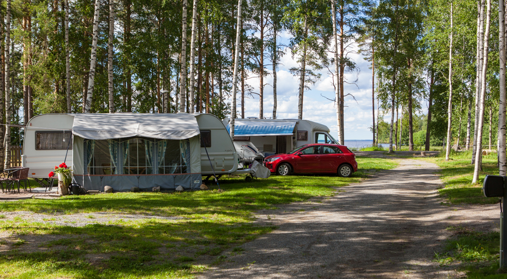 Koivulehto sijaitsee aivan pienvenesataman vieressä ja sopii hyvin kalastavalle karavaanarille.