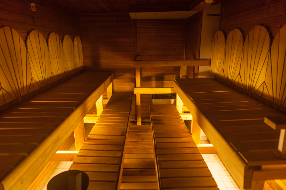 Leiriytymishintaan sisältyy iltasauna, naiset 18.00 ja miehet tuntia myöhemmin. Miehille ja naisille on erilliset pukuhuoneet. Näin voi jäädän vielä rauhassa istumaan pukuhuoneeseen seuraavan saunavuoron alkaessa. Oma saunavuoro onnistuu tietysti tilauksesta.