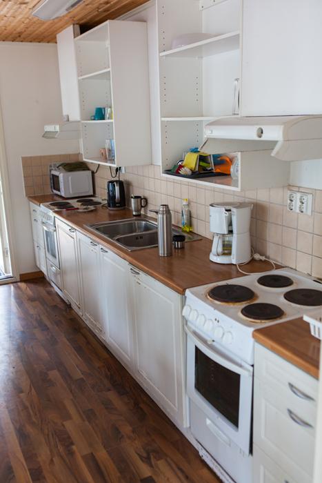 Alueen keskeltä, caravan-paikkojen ja telttailualueen vierestä löytyy onneksi uudempi huoltorakennus. Siinä on suihkut ja vessat sekä hyvät keittiötilat. Kyökin yhteydessä on tilaa ruokailuun. Keittiön edustalla on lisää einehtimistilaa katetulla ulkoterassilla. Saman katon alla on myös hyvä grillipaikka.