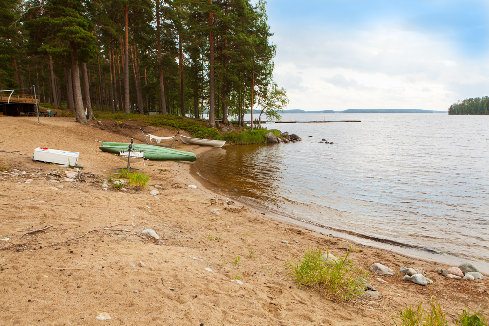 Grillin oikealla puolella on uimaranta. Saimaan tyyliin se on hienoa hiekkaa. Grilliltä vasemmalle mentäessä löytyy venelaituri sekä saunat. Majoitushintaan sisältyy sesonkikuukausina aamusauna. Naisten aika yhdeksästä kymmeneen, miesten vuoro on 10.30-11.30. Illalla saunat toimivat tilaussaunoina.