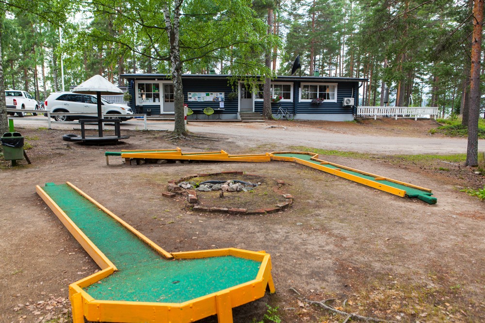 Alueen portilla on toimisto- ja ravintolarakennus. Toimiston yhteydessä on kioski. Ravintolan puolella tarjolla mm. aamupalaa, pikaruokia sekä virvokkeita kaikin anniskeluoikeuksin. Kesäkeleillä janojuoma maistuu laajalla terassilla.