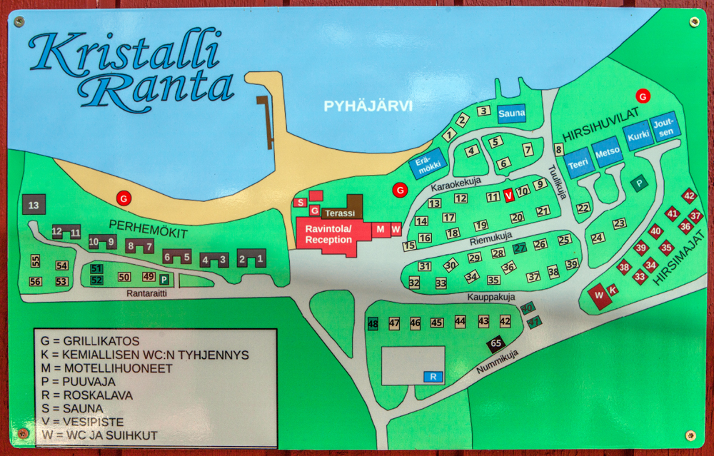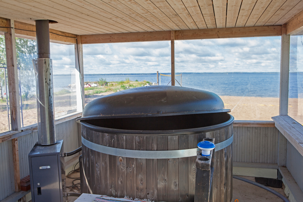 Kristalliranta on hyvä rantalomakohde. Kun aamuaurinko on Kristallirannassa noussut metsän takaa, paistaa se upealle hiekkarannalle ihan koko päivän, laskeakseen illalla vastarannan taakse. Suomalaiseen rantalomaan kuuluu olennaisena osana saunonta. Kesällä kylvetään pääasiassa rantasaunassa, josta pääsee suoraan Pyhäjärveen. Auringonlaskua voi ihailla saunan terassilla. Talvella lämpiää pienempi konttisauna ja vilvoitteluun tehdään avanto. Karavaanarien yleiset saunavuorot ovat perjantaisin ja lauantaisin, naiset 17-18.00 ja miehet 18-19.00. Saunaan voi varata yksityisvuoron lisämaksusta, muistuttaa Seija.