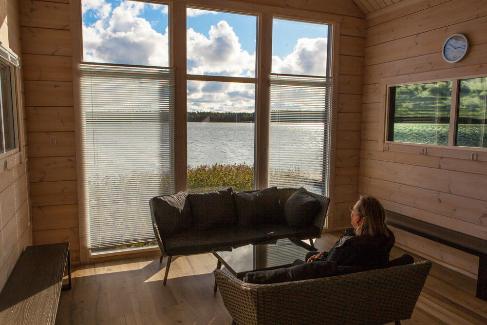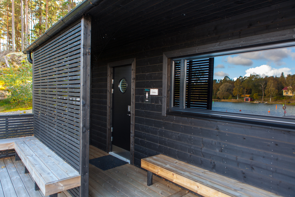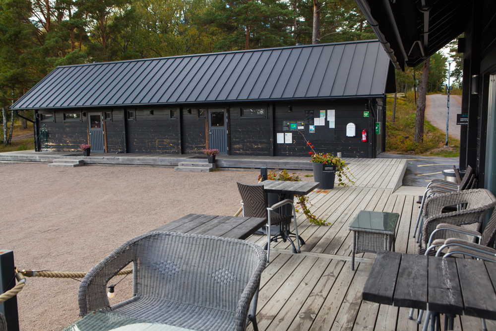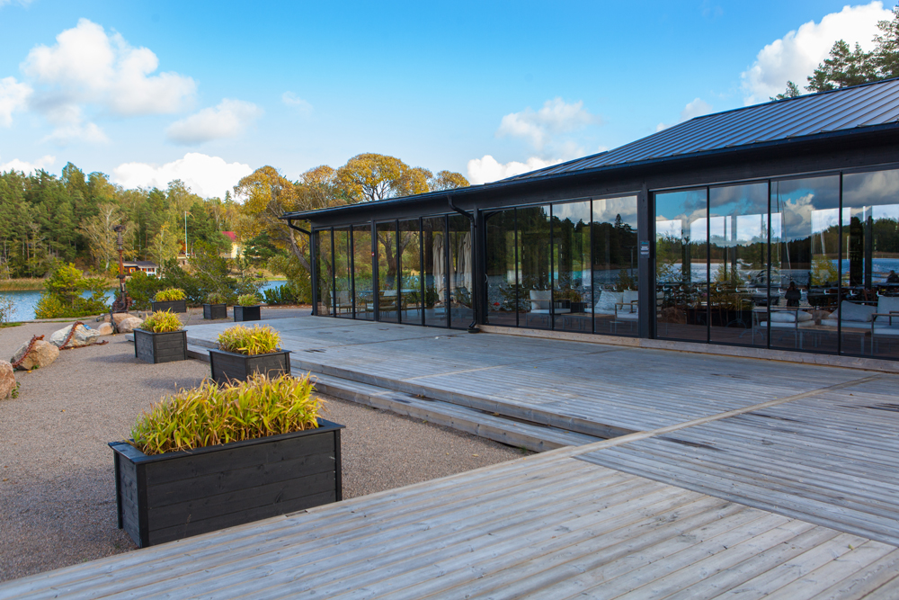 Viihtyisä terassiravintola ja saunat venesataman edustalla