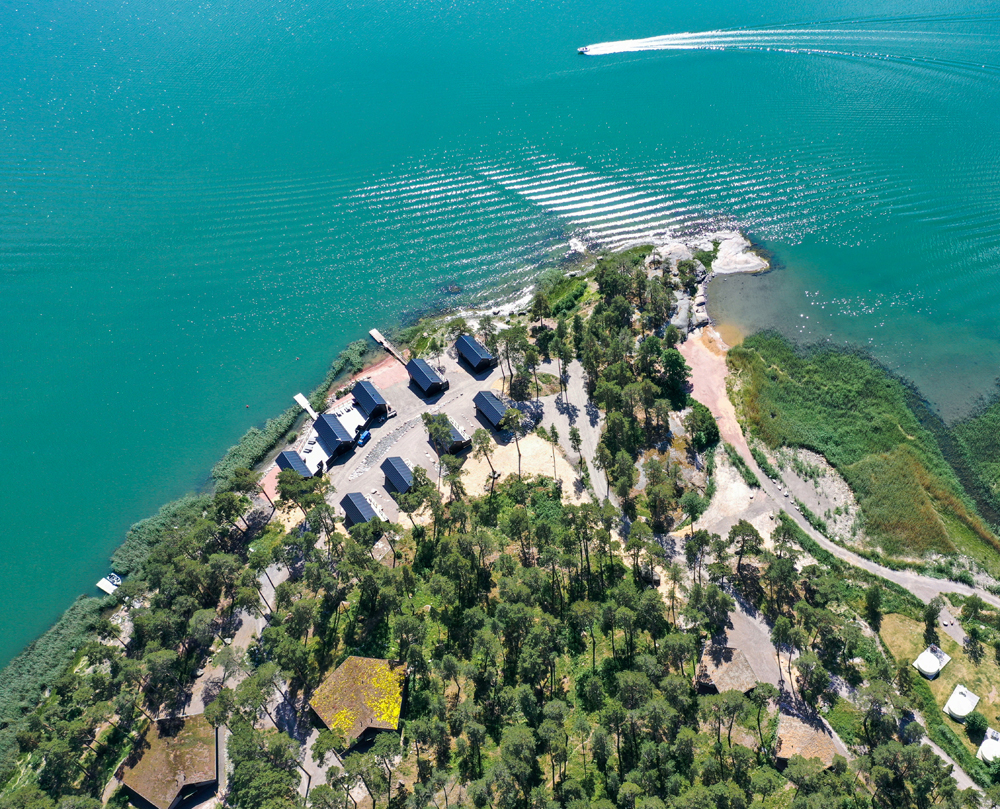 Toimisto sekä huoltorakennus jakavat alueen kahtia. Vanhempi alue on nurmikentällä huoltorakennusten eteläpuolella. Numeroidut paikat on rajattu selkeästi köysiaidoilla ja välipuilla. Osa paikoista on lähellä merta, vain kaislikkoa välissä.