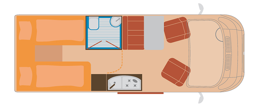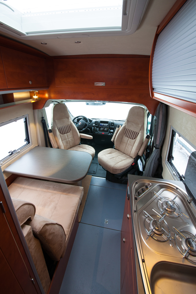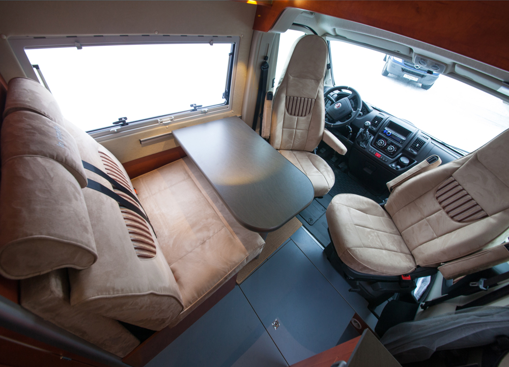 Avantissa on asuinosan ovea vastapäätä pöytä, jonka ympärillä on kahdenistuttava sohva takana ja edessä kääntyvät pilotti-istuimet. Pöytä voidaan laskea alas vuodetasoksi. Keskellä oikealla osittain liukuoven kohdalla on tiskipöytä liesineen. Vasemmalla on kohtuullisen tilava WC. Perässä on pituutta niin paljon, että autoon mahtuu erilliset vuoteet pitkittäin.