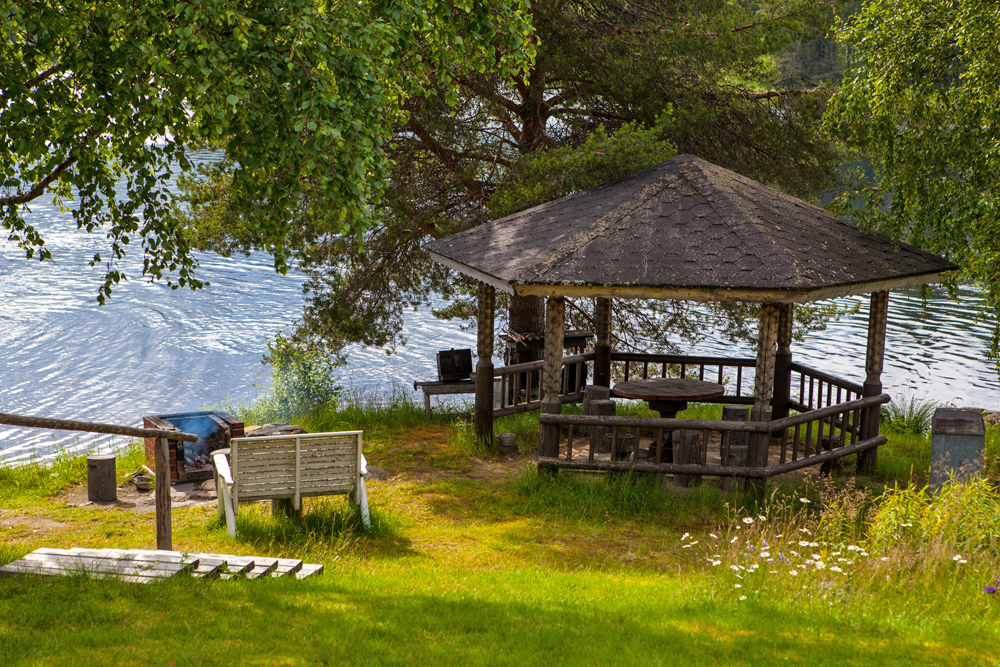 Piha-alueen toisella reunalla on huoltorakennus, jossa on vessat ja hyvät keittiötilat. Rannassa on kaksi saunarakennusta, vanha sekä uusi, ja niiden edessä rannassa uimalaituri. Vanhemman hirsisaunan vieressä on nostalginen harmaa hirsisiatta, joka toimii majoitustilana.