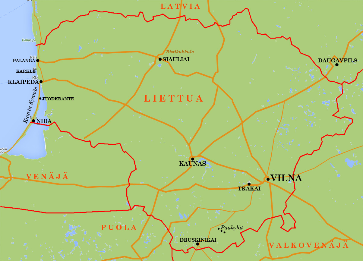 Liettua on lähellä Suomea. Laivalla yli Tallinnaan ja jo saman päivänä olet perillä. Mitään erikoisia papereita ei tarvita. Maassa on sama valuutta kuin Suomessa, Asioiminen on helppoa ja englantia puhutaan hyvin yleisesti, ainakin kaikissa tureistikoihteissa.