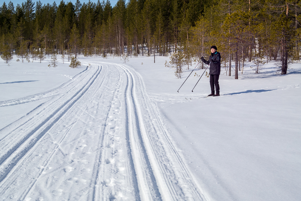 Muutaman kilometrin lenkki poikkeaa välillä tasaiselle suoniemekkeelle. Latuverkoistolla on hyvät opaskartat.