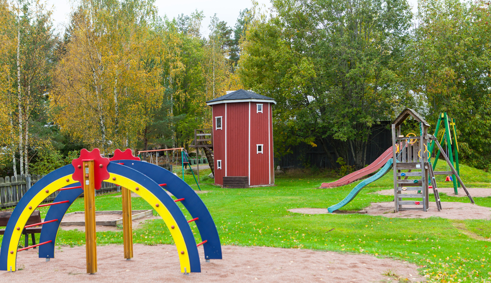 Polkupyöräkin löytyy, jos ei omaa tullut mukaan. Lapsille huoneeseen on tehty leikkinurkkaus. Lasten leikkipaikalla on mm. torni, liukumäki ja keinuja. Alueella on myös jalkapallokenttä.