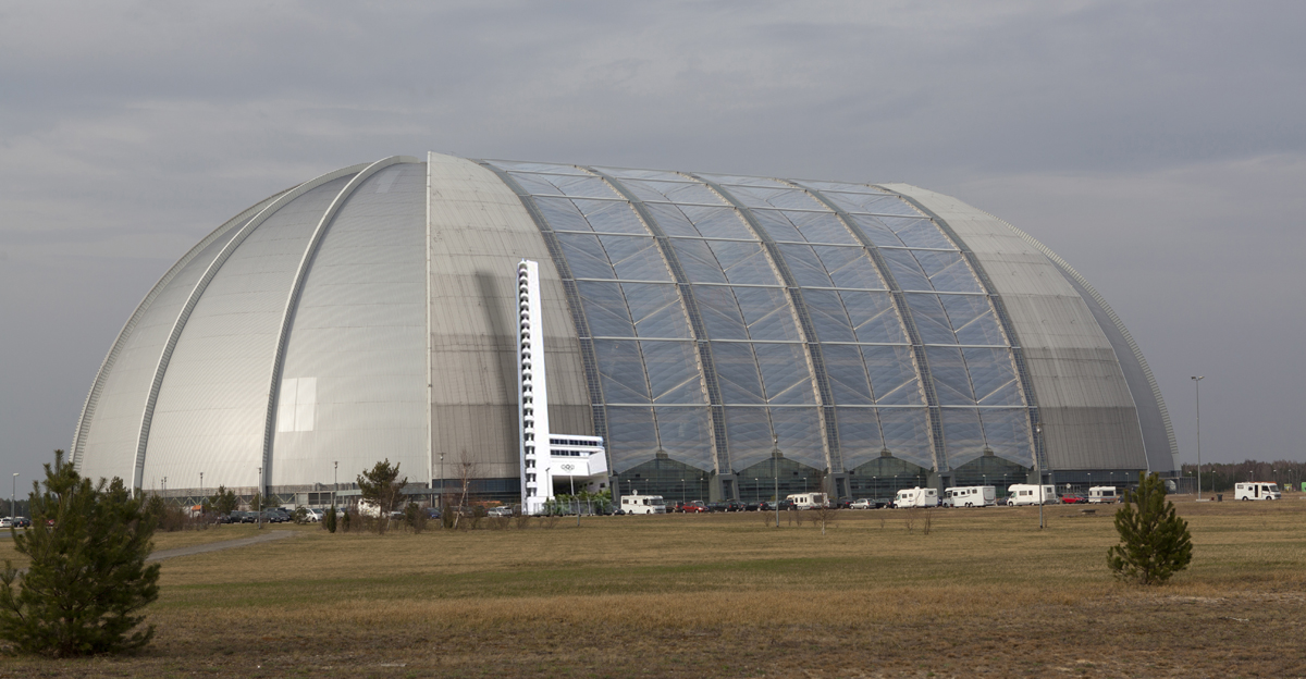 Itsekantavan hallin sisälle mahtuisi kahdeksan täysikokoista jalkapallokenttää. Halli näkyy Berliinin Potsdamer aukiolle, jonne on matkaa yli 60 kilometriä. Korkeutta on 107 metriä. Vertailun vuoksi Olympiastadionin torni on ”vain” 72 metriä. Pituutta hallilla on 360 metriä, leveyttä 210 metriä. Ilmalaivat kulkivat sisään ja ulos 660 tonnia painavista ovista.