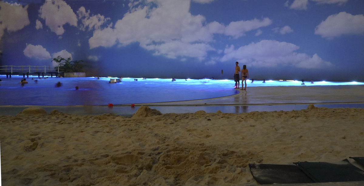 Pääaltaita on kaksi. Veden lämpötila näissä on 30 astetta. Toisella altaalla on 200 metriä pitkä hiekkaranta. Jos ei halua makoilla hiekalla, voi asettua palmujen katveeseen pengerretylle rinteelle. Rinteen päällä on kaksikerroksinen baari. Isomman altaan keskellä on saari, jossa järjestetään live-musiikkiesityksiä ja muuta ohjelmaa.