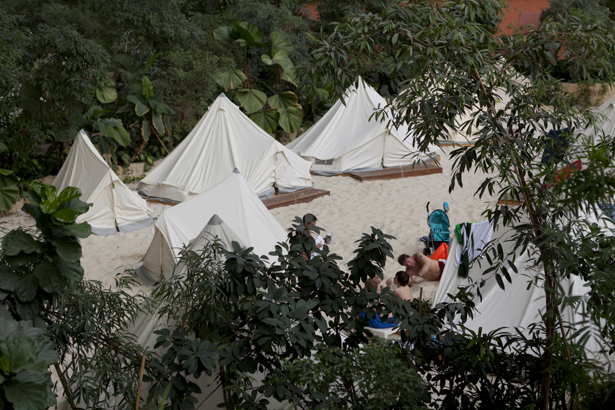 Leirintäalue löytyy puolen kilometrin päästä tropiikista. Ajoneuvopaikat voi varata etukäteen. Alueelta on jatkuva ilmainen bussikuljetus tropiikkiin. Leiriytyjä voi käydä tropiikissa useammankin kerran päivässä. Lipun ovat voimassa 24 tuntia ja vuorokausi vaihtuu 03:00. Caravan-alueella on 91 paikkaa matkailuajoneuvoille ja 20 ns. comfort-paikkaa, joiden pinta-ala on 100 m2. Näissä on nurmikkopohja ja betoninen ajoneuvopaikka sekä omat sähkö- vesi- ja jätevesiliitännät.