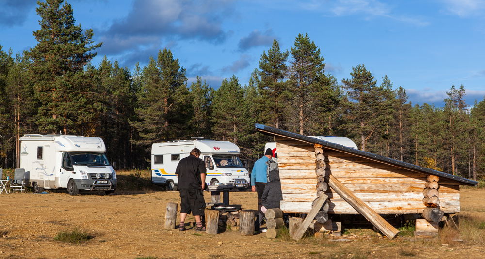 Matkailuajoneuvopaikkoja ovat loivassa hiekkaisessa etelään viettävässä rinteessä. Sähköpaikkoja on 40 ja sähköttömia kymmenkunta lisää. Enemmänkin saattaisi mahtua…