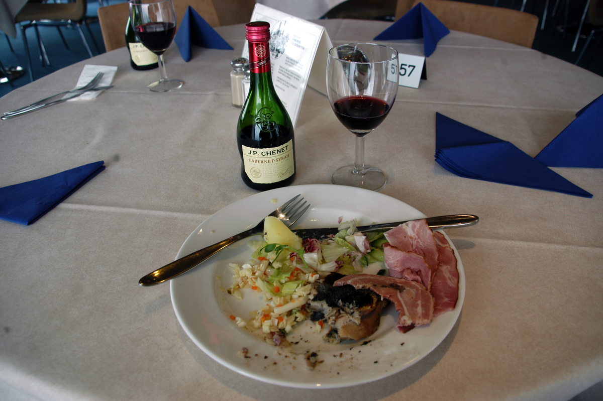 Hotellin keittiö on jo kiinni mutta kokki tekee meille kuitenkin iltapalaksi paistettua kanaa ja salaattia. Ruokajuomaksi tietysti punaviiniä. Kyllä maistuu ja hyvin nukuttaa!