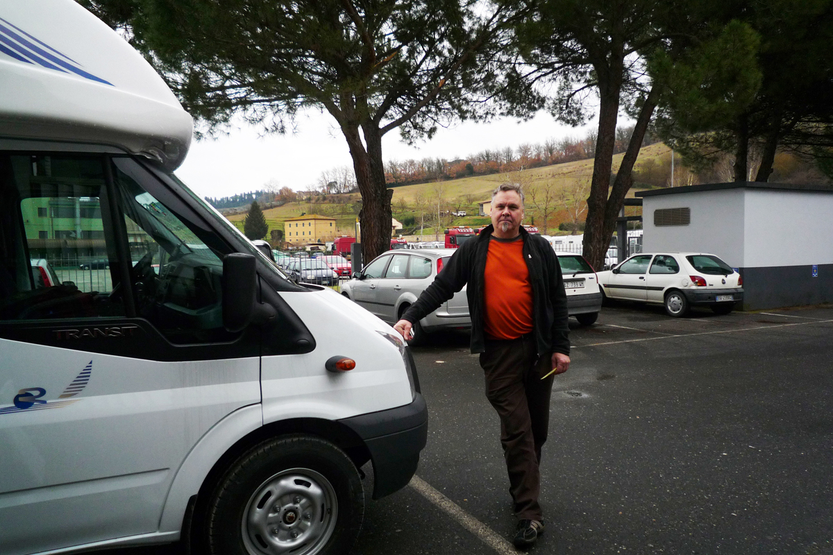 Auto on tehty Italiassa Firenzen eteläpuolella. Alueella on yhteensä viisi matkailuautotehdasta. Saamme auton todella edullisesti hakemalla sen suoraan tehtaalta. Pientä jännitystä noutoon tuo se, että matka tehdään talvella, eikä italiasta tietenkään saa autoon talvirenkaita. Tämä tarina on kirjoitettu matkapäiväkirjaan reissun aikana helmikuussa 2010.