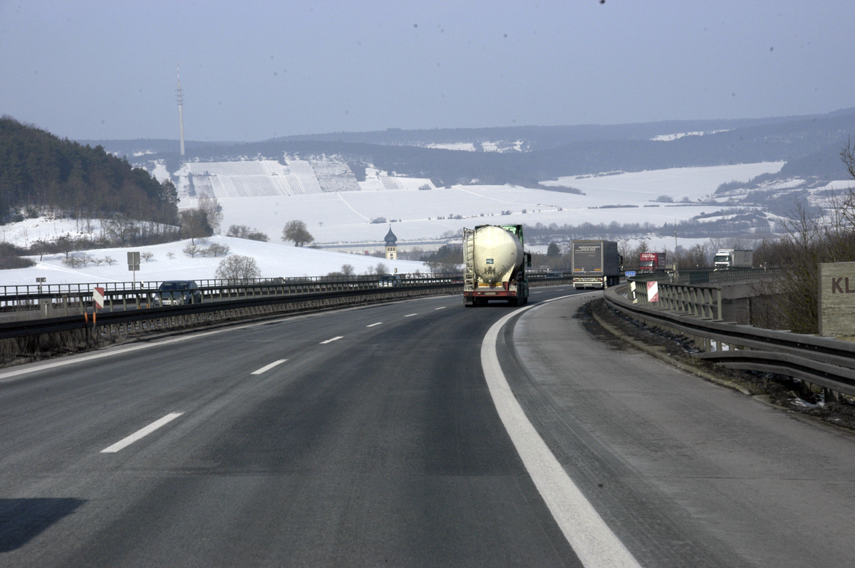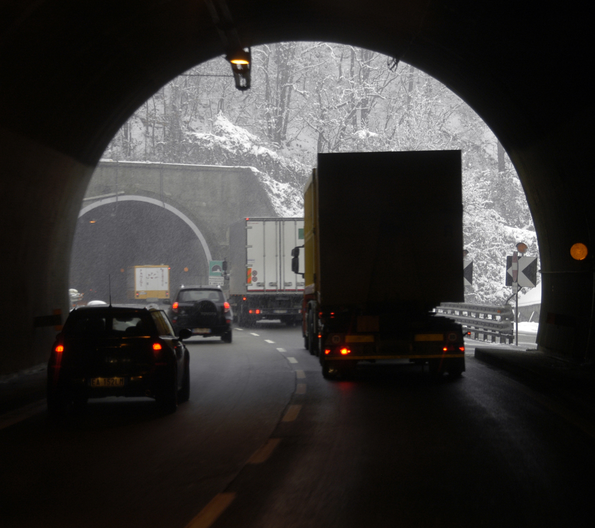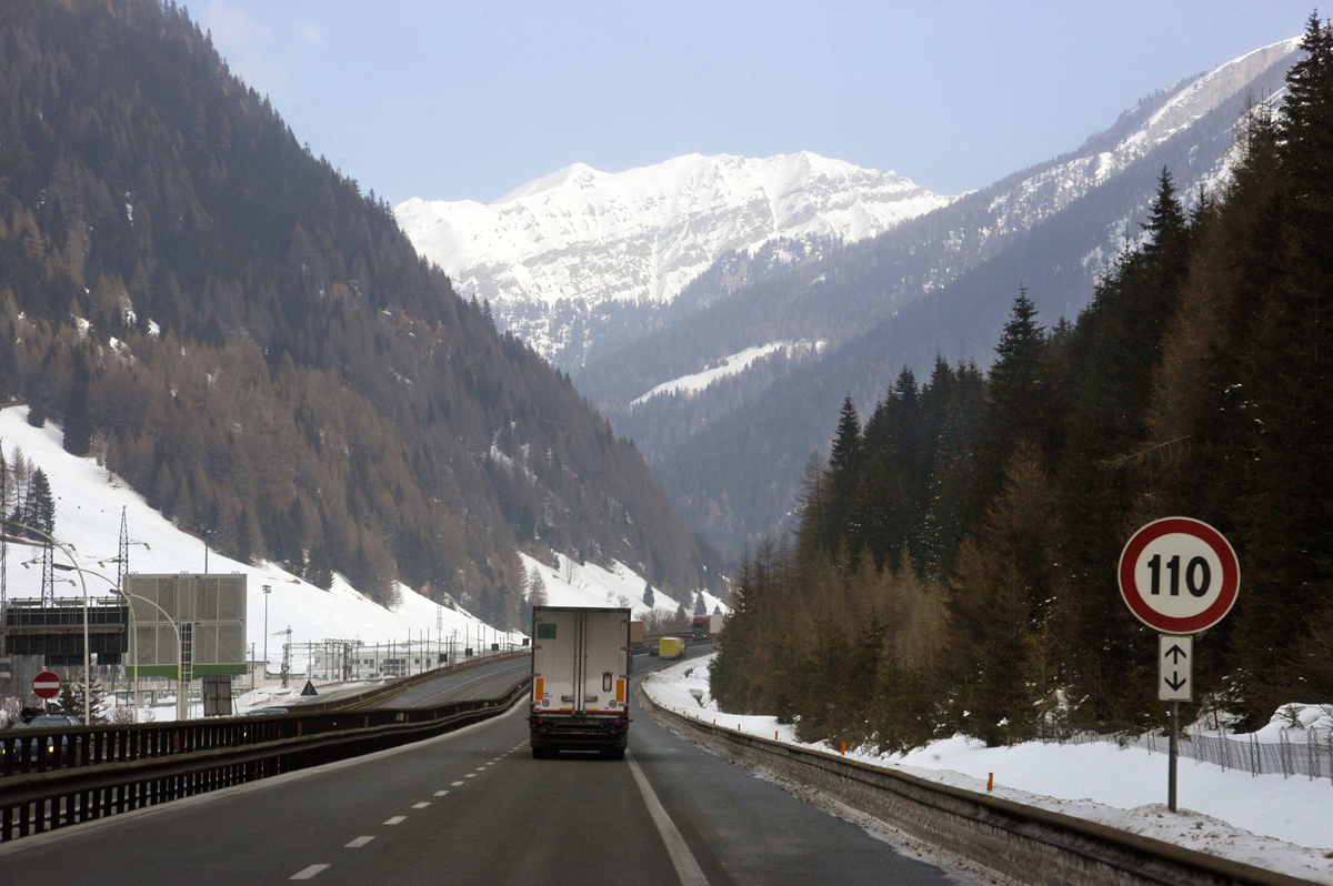 Bolzanossa vaihdamme moottoritielle. Vuoristossa on onneksi hyvä ajokeli: Pakkasta ja kuivaa.
