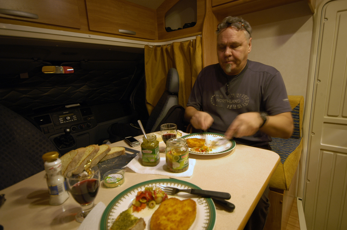 Tulemme caravan-alueen portille mutta miksi ovet ei aukene meille? Kello on 18:30 ja toimiosto on sulettu puoli tuntia sitten. (Ei olisi pitänyt syödä päivällä) Jäämme portin ulkopuolelle pysäköintialueelle yöksi. Portin ohi pääse kyllä alueen vessaan mutta eipähän tarvitse maksaa.