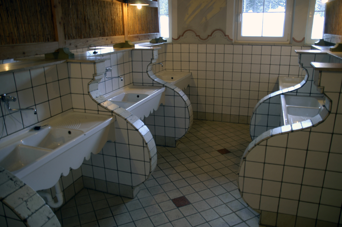 Palaamme leiriin ja menemme illalla uimaan ja saunomaan Sexten Caravan-parkin upeaan uimalaan, joka poikkeaa täysin aiemmin näkemistämme. Altaan reunat on tehty luonnonkivestä, altaan pohja on hiekkaa. Luukusta pääsee uimaan ulos pakkaseen.
