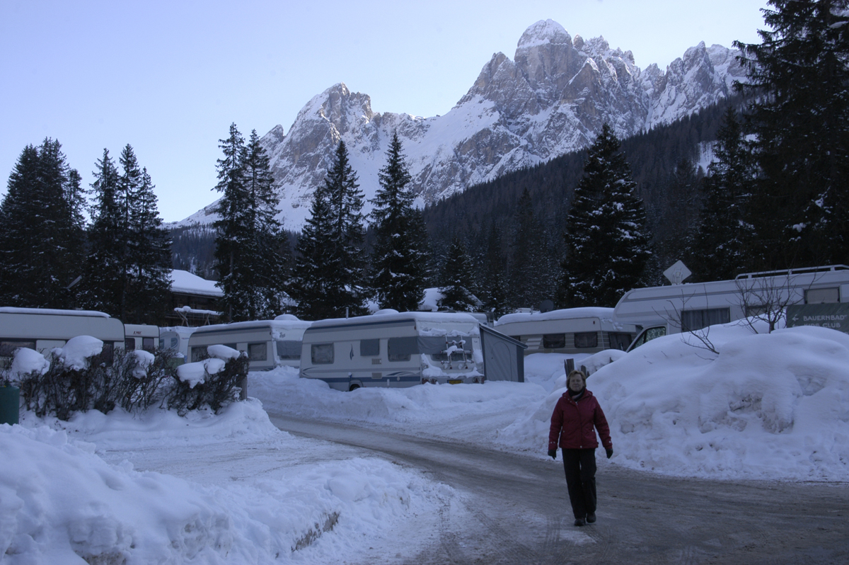 Puolilta päivin saavumme Caravan Park Sexteniin. Maisemat ovat upeita ja ympäröivät vuoret mahtavia. Myös caravan-alue on upea. Väittää olevansa Euroopan hienoimpia alueita.