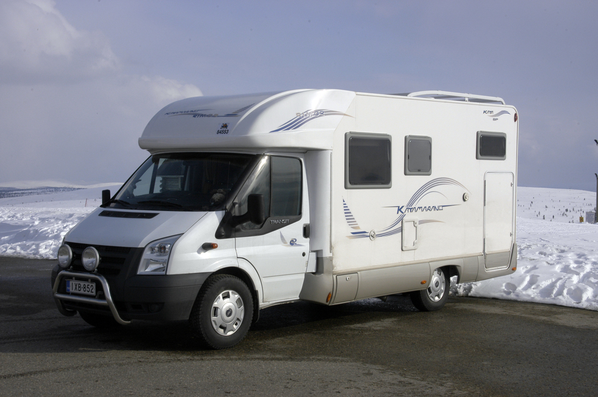 Matkailuautomme on Ford Transitin alustalle rakennettu Rimor Katamarano 8 P.
