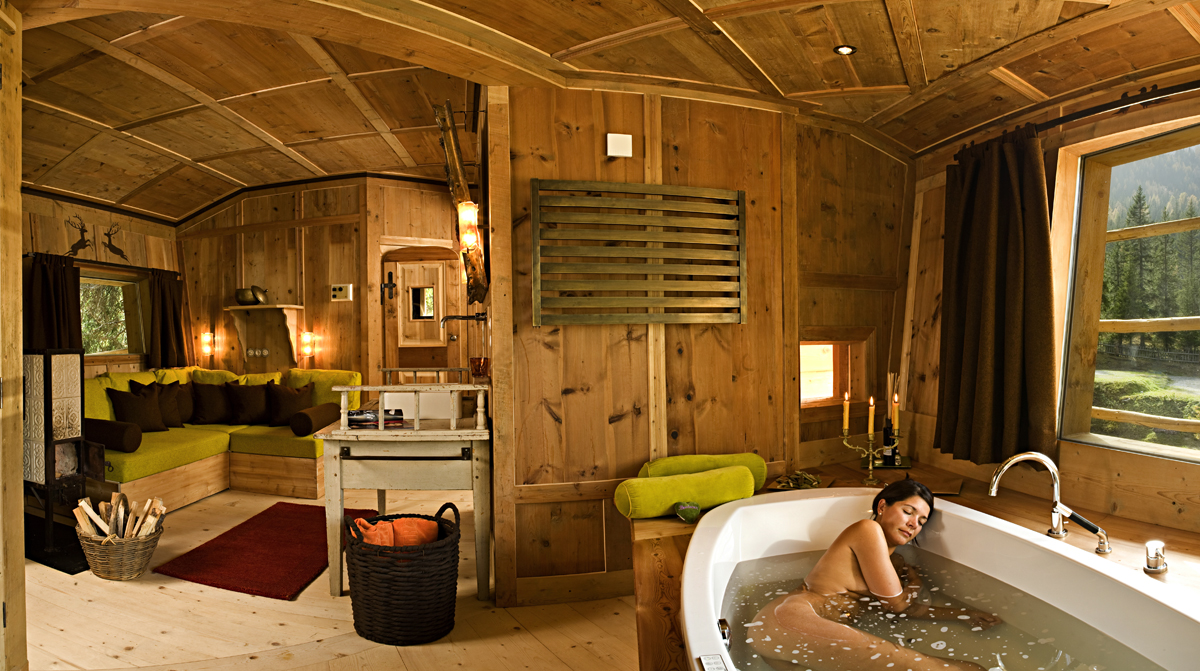 Rakennukset ovat järeää hirttä, sisustus rustiikkista. Yksi huoltorakennuksista on maan alla. Erikoisuuksia löytyy myös puusta. Ylös on rakennettu mökki ja kylpytila.