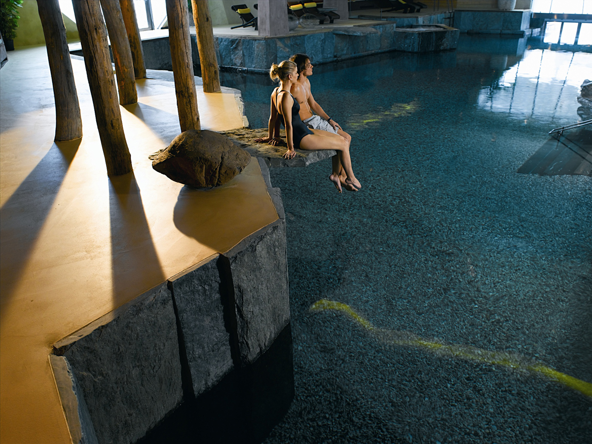 Saunaosasto on erillinen ”halli”. Pieniä saunoja on kymmenen erilaista. Roomalaisessa saunassa on kuumat kaakeli-istuimet. Yrttisaunassa roikkuu paljon erilaisia kuivattuja kasveja. Tuoksu on huumaava mutta löyly lehmän henkäys, joka on syönyt yrttejä. Höyrysaunassa on – höyryä. Metsäsauna on hirsistä tehty pieni harjakattoinen mökki. Suomalainen saunakin löytyy. Siellä on ylivoimaisesti kovimmat löylyt. Saunojen lisäksi on erilaisia suihkuja ja porealtaita.