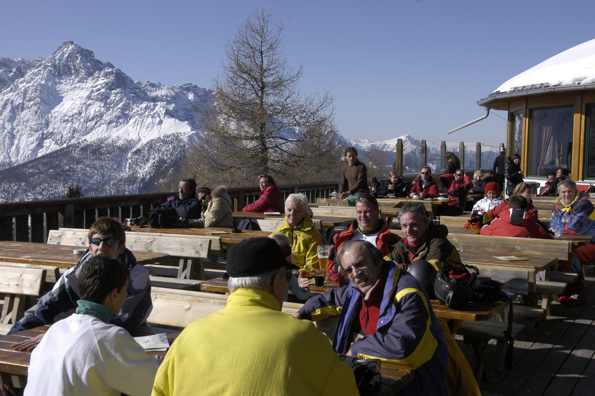 Nälkä alkaa pian vaivaamaan ja asetumme alppiravintolaa. Snizeliä kitusiin ja olutta huiviin. Vaikka täällä ylhäällä on turistihinnat on ruoan hinta suomalaista keskitasoa. Olut on tietysti paljon halvempaa. . .