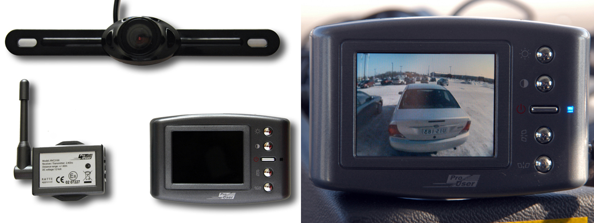 Perässä on pieni ja halpa peruutuskamera. Kuvan tarkkuus ei ole lähelläkään WAECOa mutta ehkä sellaiseen on varaa myöhemmin. Kameran ja näytön välillä on langaton yhteys. Kameraan vedettiin sähköt takavaloista eli se käynnistyy aina kun valot laitetaan päälle. Monitori ottaa virtansa kojelaudasta ns. tupakansytytinpistokkeesta.