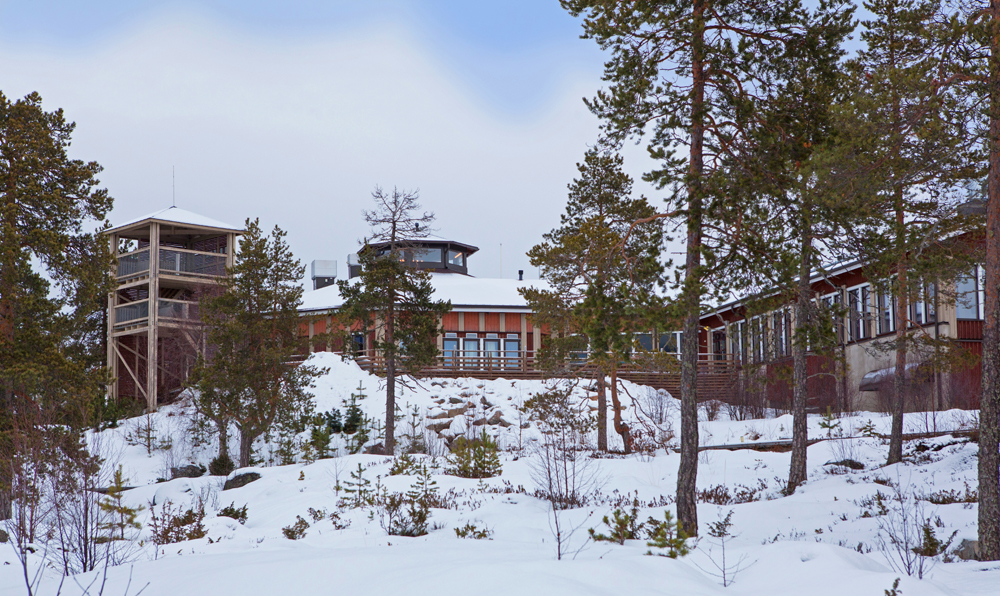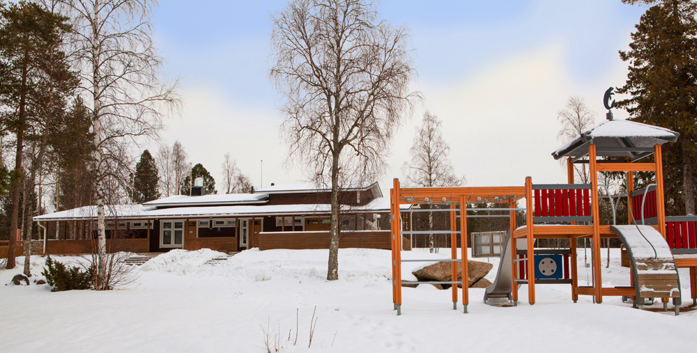 Leirintäalueen keskellä on lasten leikkipaikka. Liukumäki ja kiipeilyteline toimivat talvellakin.