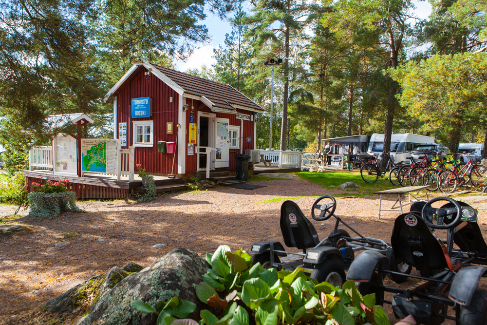 Toimisto on omassa pikku mökissään. Toimistossa toimii myös kaasun myynti sekä kesäkioski. Mökin vieressä on lasten leikkikenttä josta löytyy mm. liukumäki, kiipeilypaikkoja sekä suosittu trampoliini.