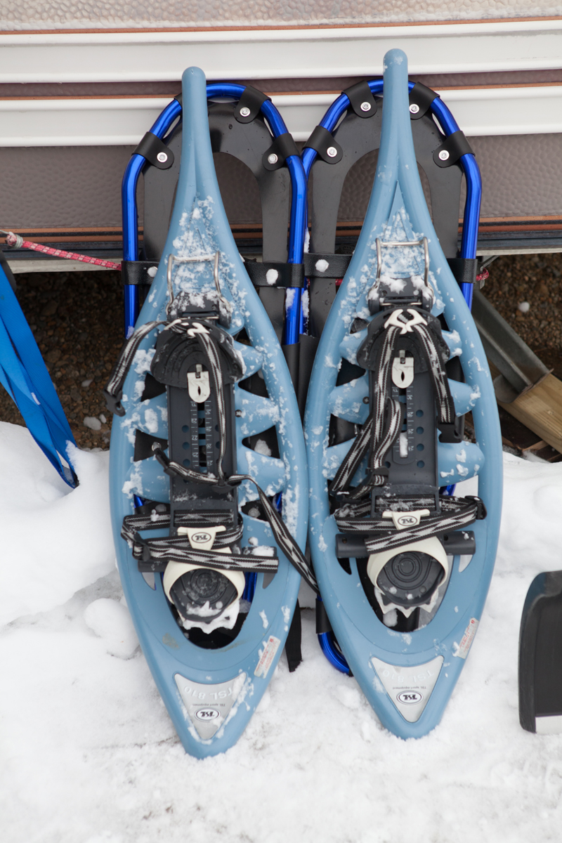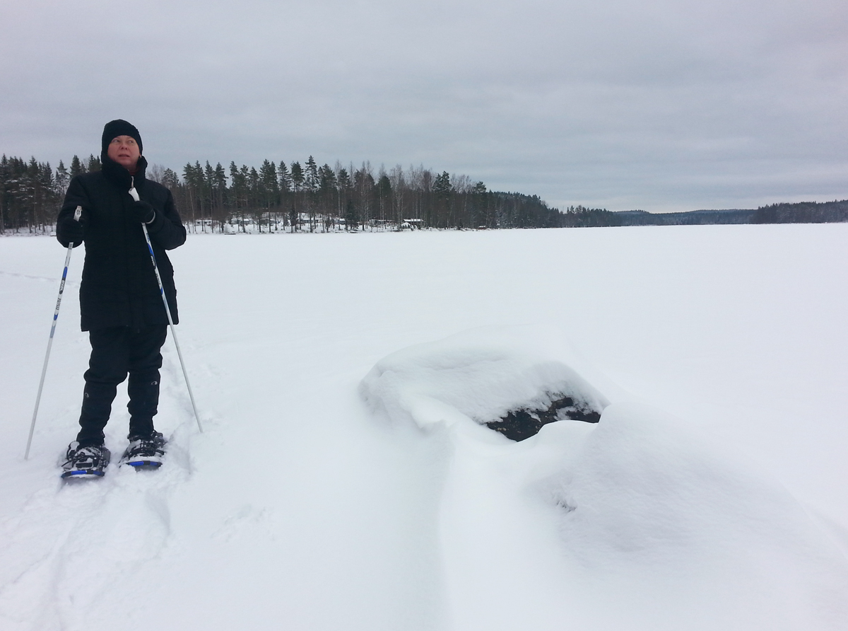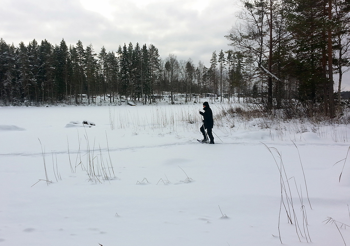 Testaamme uusia lumikenkiä Järvellä. Hyvin toimii!