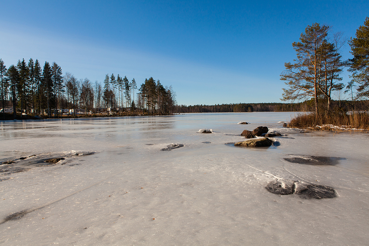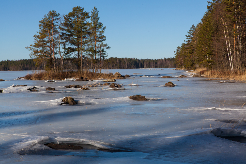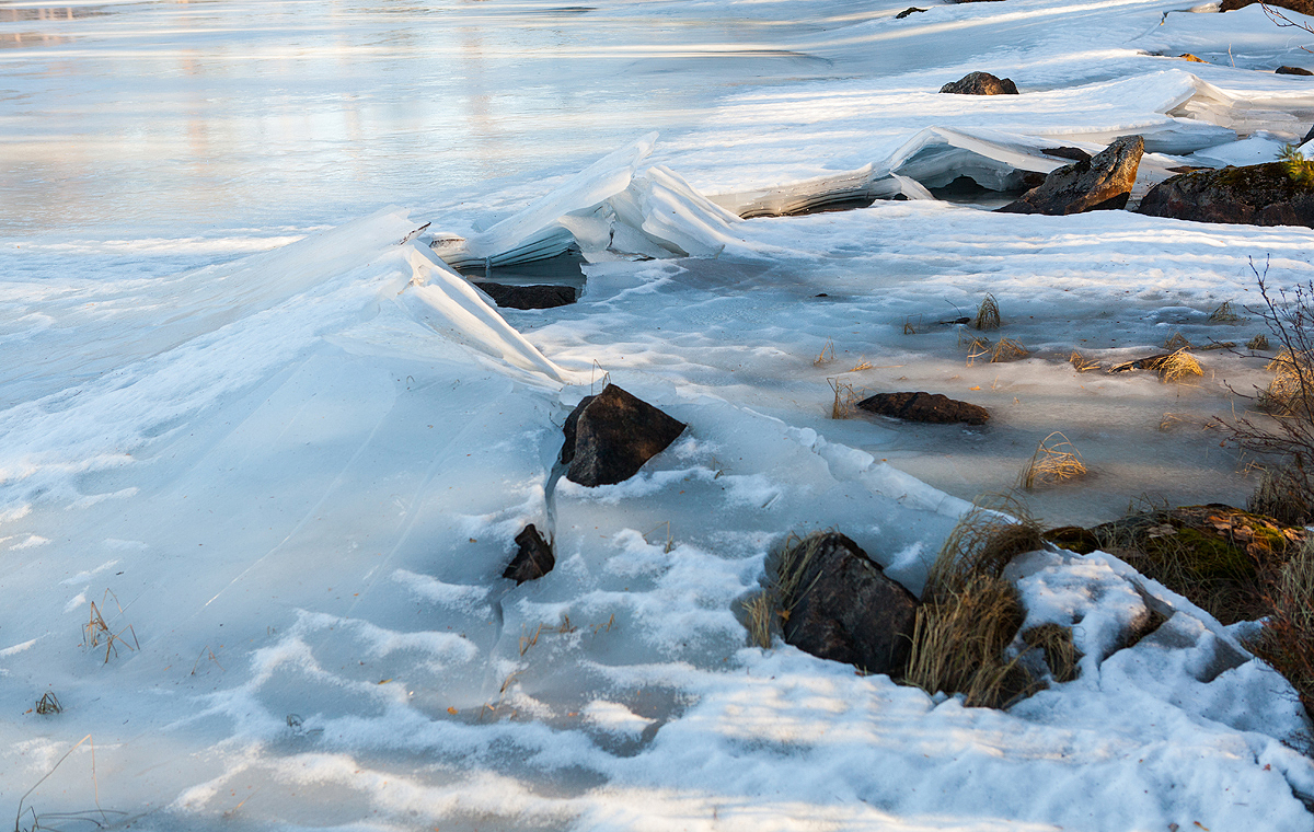 Jäältä on lumet sulaneet pois. Kylmä on taiteillut jäähän hienoja kuvioita.